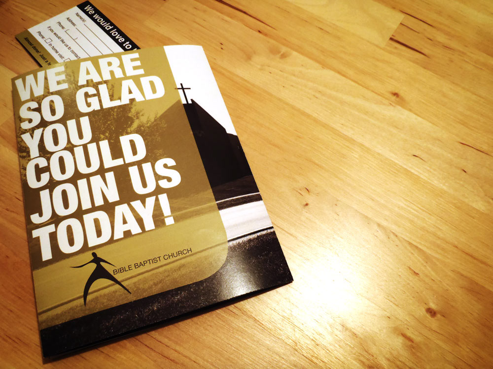 Trifold welcome book for new visitors of Bible Baptist Church.